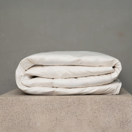 שמיכת פוך במבוק אורגני – מילוי מסיבי במבוק אורגניים והיפואלרגניים לוויסות טמפרטורה טבעי. זמינה במשקלים שונים – 250 גרם (ארבע עונות) או 400 גרם (חורף קר).