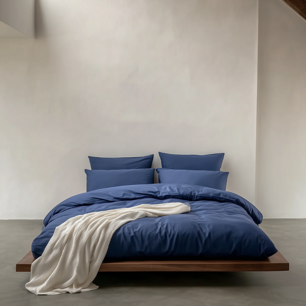 סט מצעים סאטן, כחול עמוק